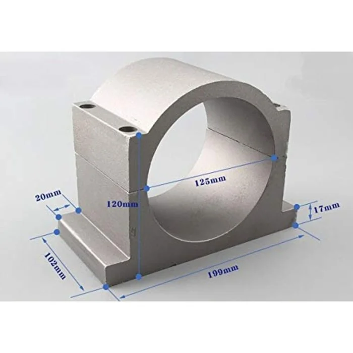 The 125mm CNC Spindle Motor Clamp Mount Bracket is a heavy-duty, precision-machined aluminum mounting bracket designed to accommodate large spindle motors used in industrial-grade CNC routers, engraving machines, and milling systems. With an internal diameter of 125mm, this clamp securely holds high-power spindles (typically 3.0kW and above), ensuring minimal vibration and stable alignment during extended machining operations.