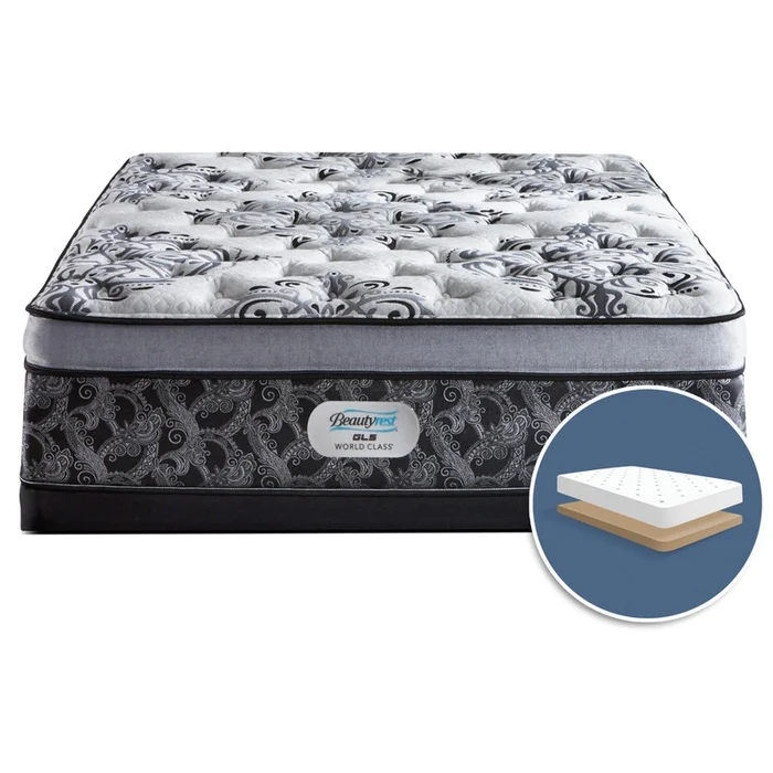 Savour each new day after you enjoy some restorative rest on this Beautyrest GL5 World Class Genesis firm Euro-top low-profile queen mattress set. With five levels of cooling gel foam lying ready to cradle your tender pressure points, you won’t have any trouble relaxing. Meanwhile, over 1,000 pocket coils are ready and willing to support your slumbering frame plus they keep you from feeling your sleep partner shift and move during the night. Surrounded by a Ventilated AirCool BeautyEdge foam border, you’ll have no problems stretching out on this amazing bed.