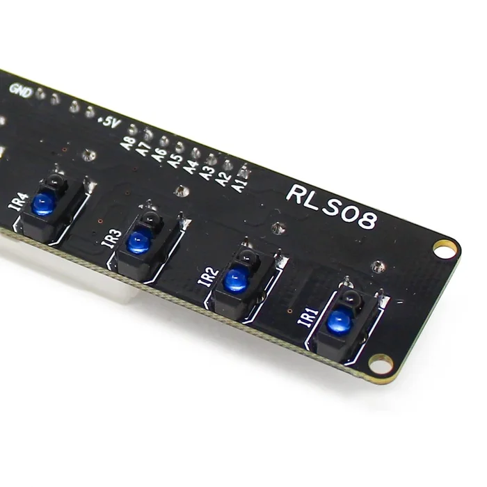RLS-08 Analog & DigitalLine Sensor Array has 8 IR LED/phototransistor pairs, making it a great detector for a line-following robot.Each sensor has its own digital and analog output also apotentiometerto adjust the sensitivity of the individualsensors.