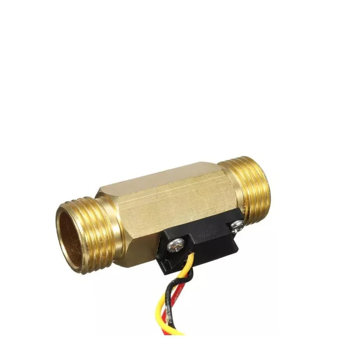 This Water flow sensor includes a copper valve through which water can pass. A water rotor along with a Hall Effect sensor senses and measure the water flow. As the water flows through the valve, the rotor rotates. This results in variation in the speed of the motor. This variation is calculated as output as a pulse signal by the Hall Effect sensor. Thus, the rate of flow of water is measured. Moreover, these sensors are widely used in water heaters, water dispensers, water purifiers, water vending machines, coffee makers, flow measurement devices, water control machines, etc.