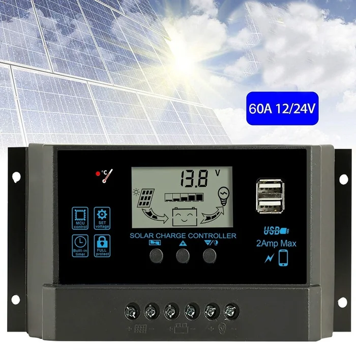 1 x Solar Charge Controller 60A, Intelligent Battery Regulator for Solar Panel LCD Display with USB Port 12V/24V (60A)
